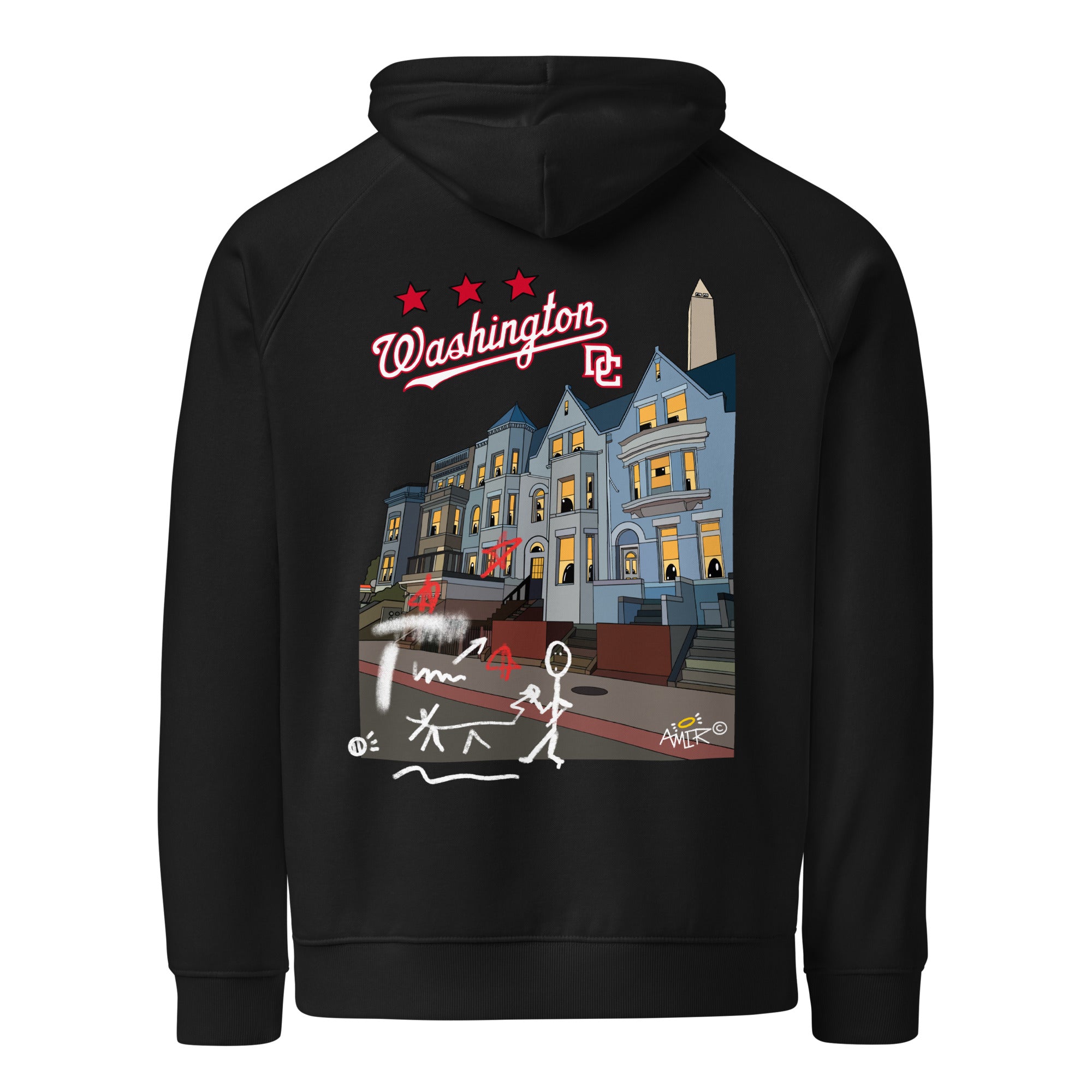 Celebrate the unique character of Florida Avenue—one of Washington, D.C.’s most storied and vibrant streets—with this playful, cartoon‑style hoodie. Featuring a stylized row of houses and city life inspired by the real architectural charm and eclectic energy along Florida Avenue, the artwork brings DC’s urban spirit to life in bold colors and lively lines. Whether you know the Avenue for its historic role as the old boundary of the city or love its mix of classic rowhouses and neighborhood culture, this hoodie makes every day feel like a stroll through a sunny block of DC.